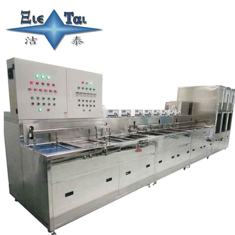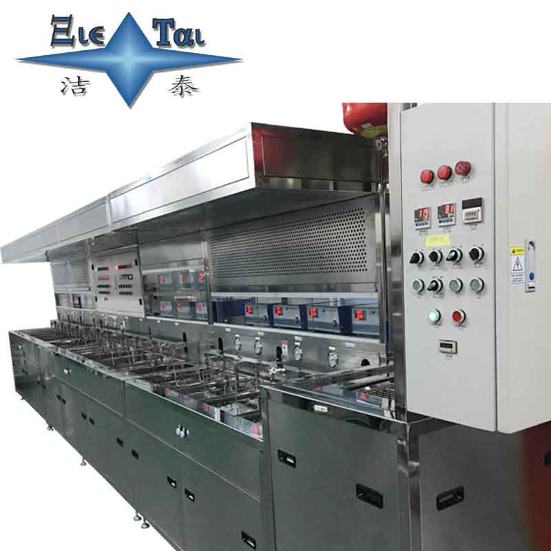 由多道超聲波洗凈槽、超聲波漂洗槽、慢拉干燥槽、過濾循環系統、工件上下搖動機構、電氣控制系統及純水供應系統等組成。
